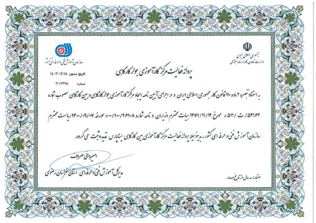 پروانه تاسیس آموزشگاه فنی و حرفه ای آزاد